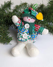 Vintage plush 1982 Wallace Berrie Christmas ornaments. This is a rare find. You will receive 1 patchwork snowman ornament and 1 Wallace Berrie girl wearing a blue and white plaid dress ornament, very cute.