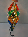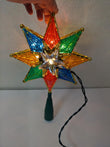 This gorgeous tree topper features a transparent star in the middle of multicolored plastic panels with white lights, very pretty. It is in excellent condition in its original box. The box shows slight signs of wear. Please see all pictures.