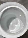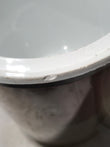 There is a chip on the side lip and there is no lid.