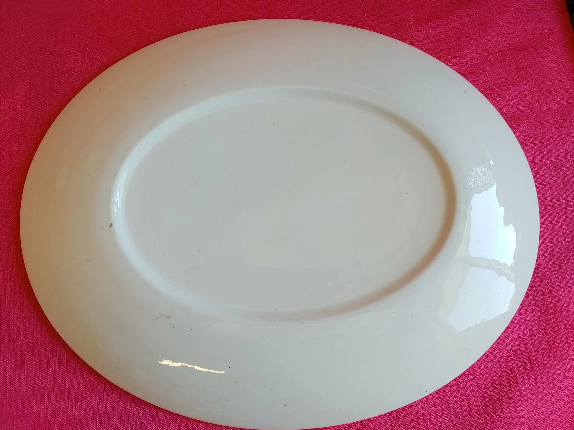 This is a beautiful Turkey serving platter. It is in great condition with no chips or cracks anywhere and all the gold trim still in tact. It has some minor wear and some scuffs on the backside.