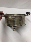 Vintage metal vanity mirror tray to store things like jewelry, perfume bottles, fingernail polish, etc. in. This would make a great gift, or piece of home decor for yourself. It is silver metal and has a beautiful geometric pattern around the sides and side handles.