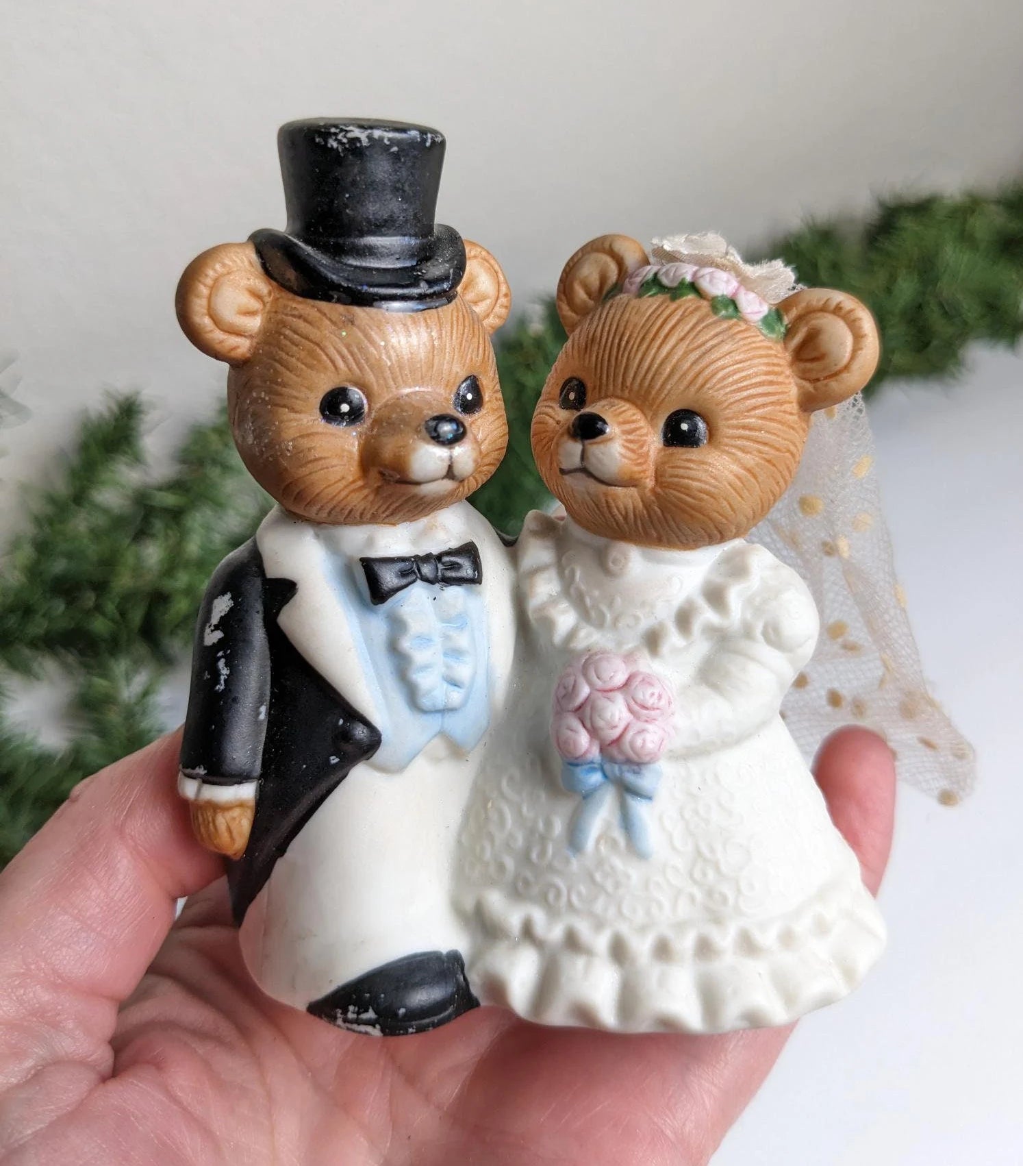 It is in great vintage condition with some missing paint to the groom bears jacket and hat, please see all pictures. No chips or cracks. Can also be used as a centerpiece at a bridal shower. Wonderful addition to your vintage collection. Hurry we only have 1 in stock.