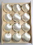 Vintage set of 12 White Satin Christmas Ornaments. These are absolutely gorgeous! They are sure to brighten up any Christmas tree. They are in great condition with some slightly fraying, please see pictures. Would look fantastic on any Christmas tree or wreath.