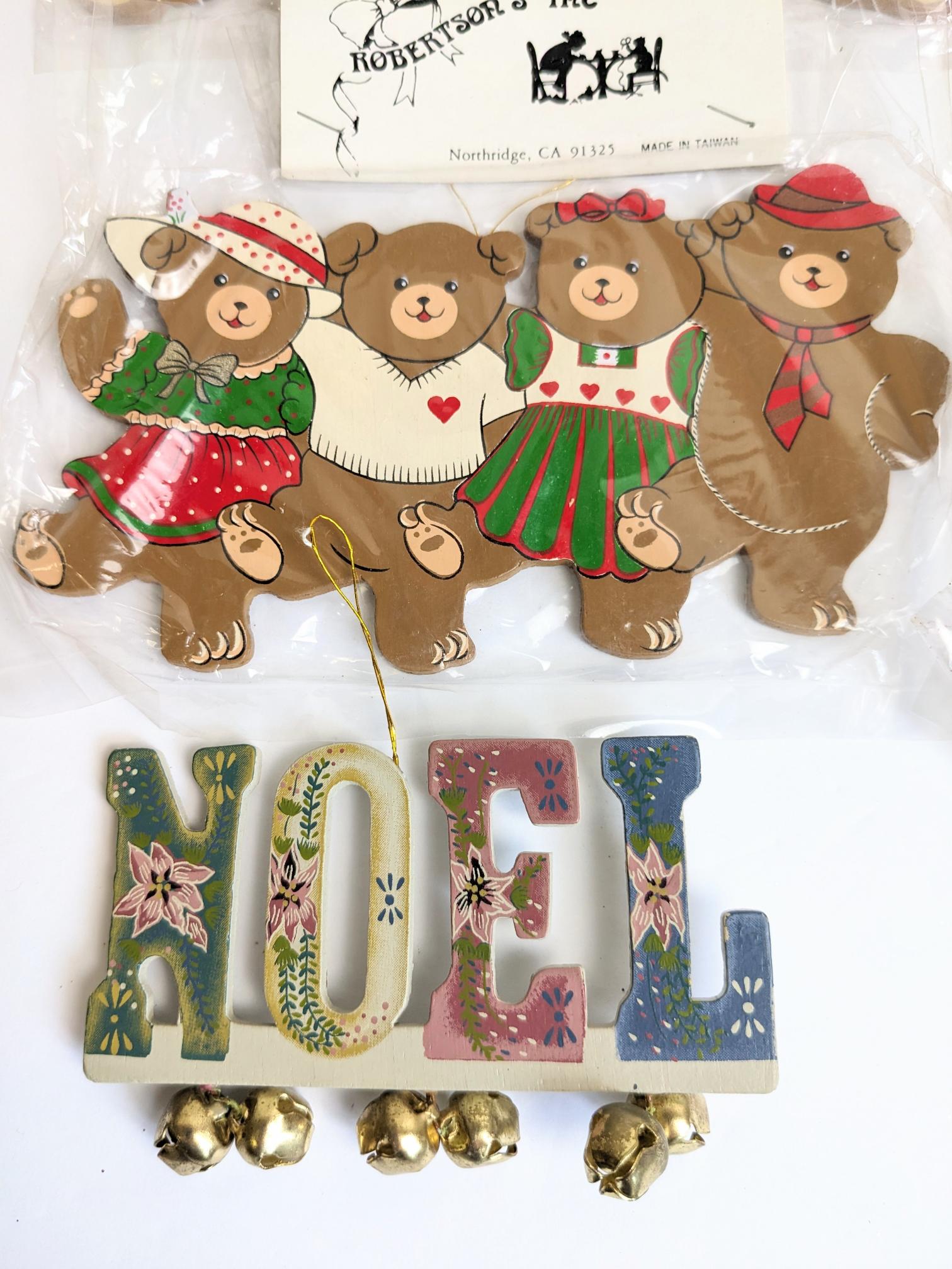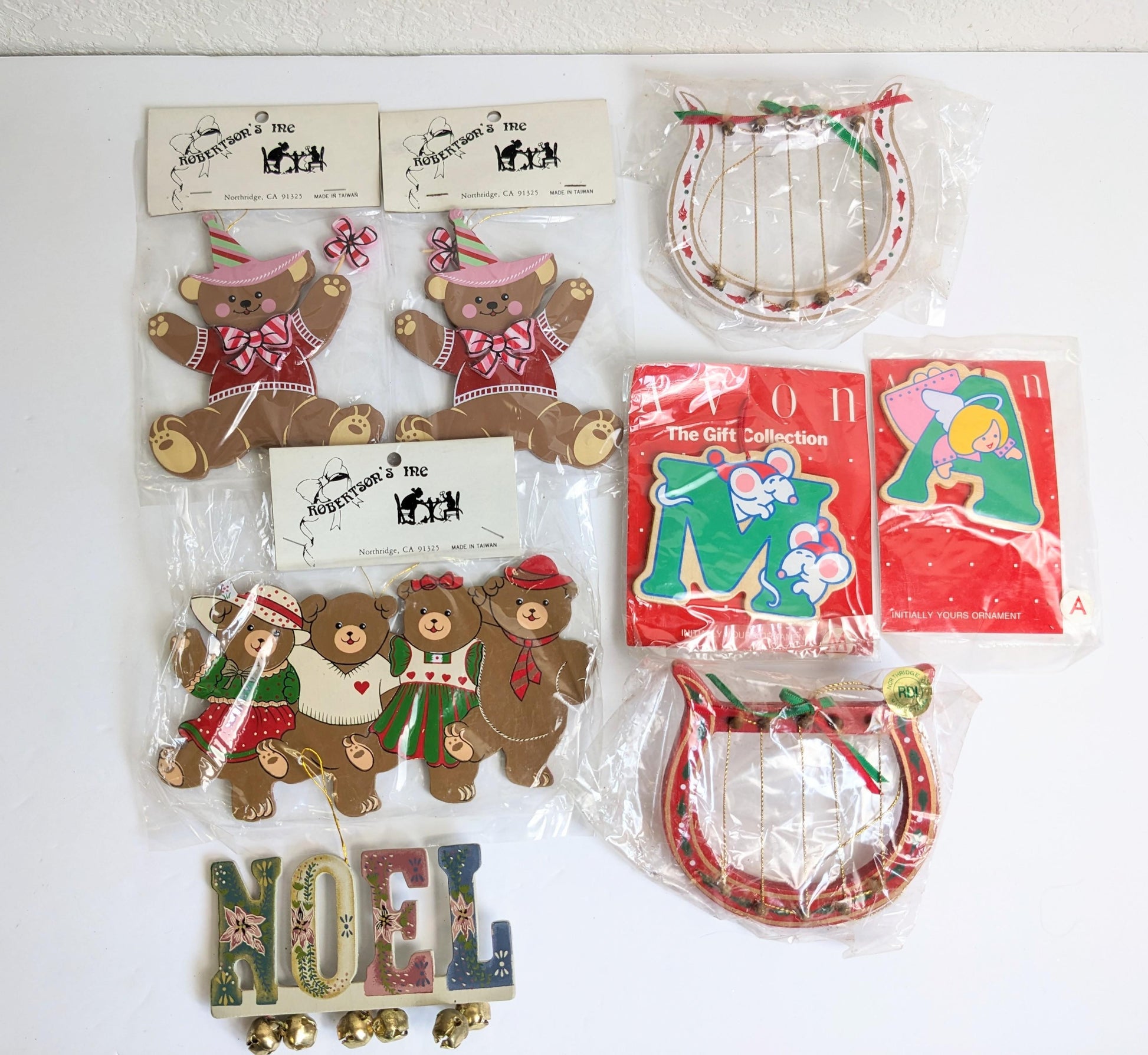 NEW Vintage set of 8 Flat Wood Christmas Ornaments. These are absolutely gorgeous! Sure to brighten up any Christmas tree. They are all in their original packaging. Some are bears and some are lyre's, very cute. Would look fantastic on any Christmas tree or wreath.