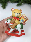 Vintage Wallace Berrie Party Bear Rocking Horse Figurine. This is so cute! Gorgeous teddy bear sitting on a rocking horse. Full of color and details from the fur of the bear to reins of the rocking horse, just darling.