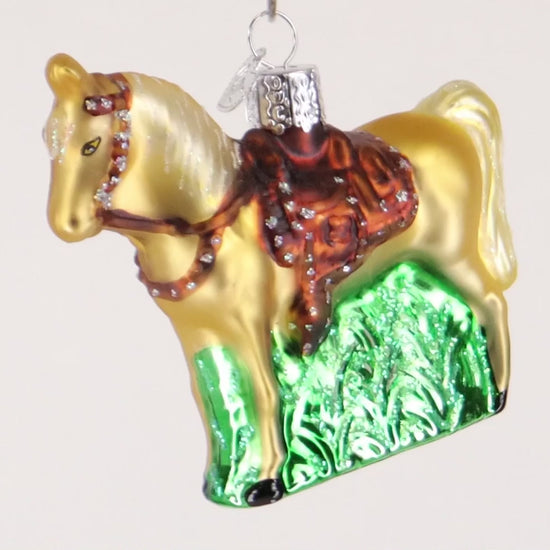 Western Horse Blown Glass Tree Ornament by Old World Christmas - Palomino Pony Saddle
