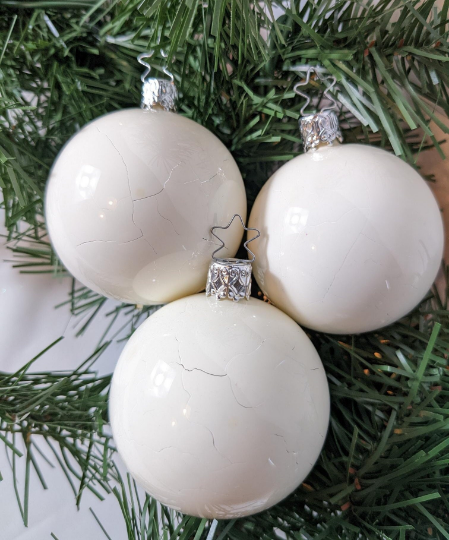 Gorgeous LARGE White Glass Ball Ornaments made by Inge-Glas in West Germany. These are absolutely gorgeous and a VERY RARE FIND. You will receive a set of 3 white opaque glass ball ornaments. These were found at an old, retired Christmas tree farm. They are in great vintage condition with crazing and normal wear from use and storage, no chips or cracks.