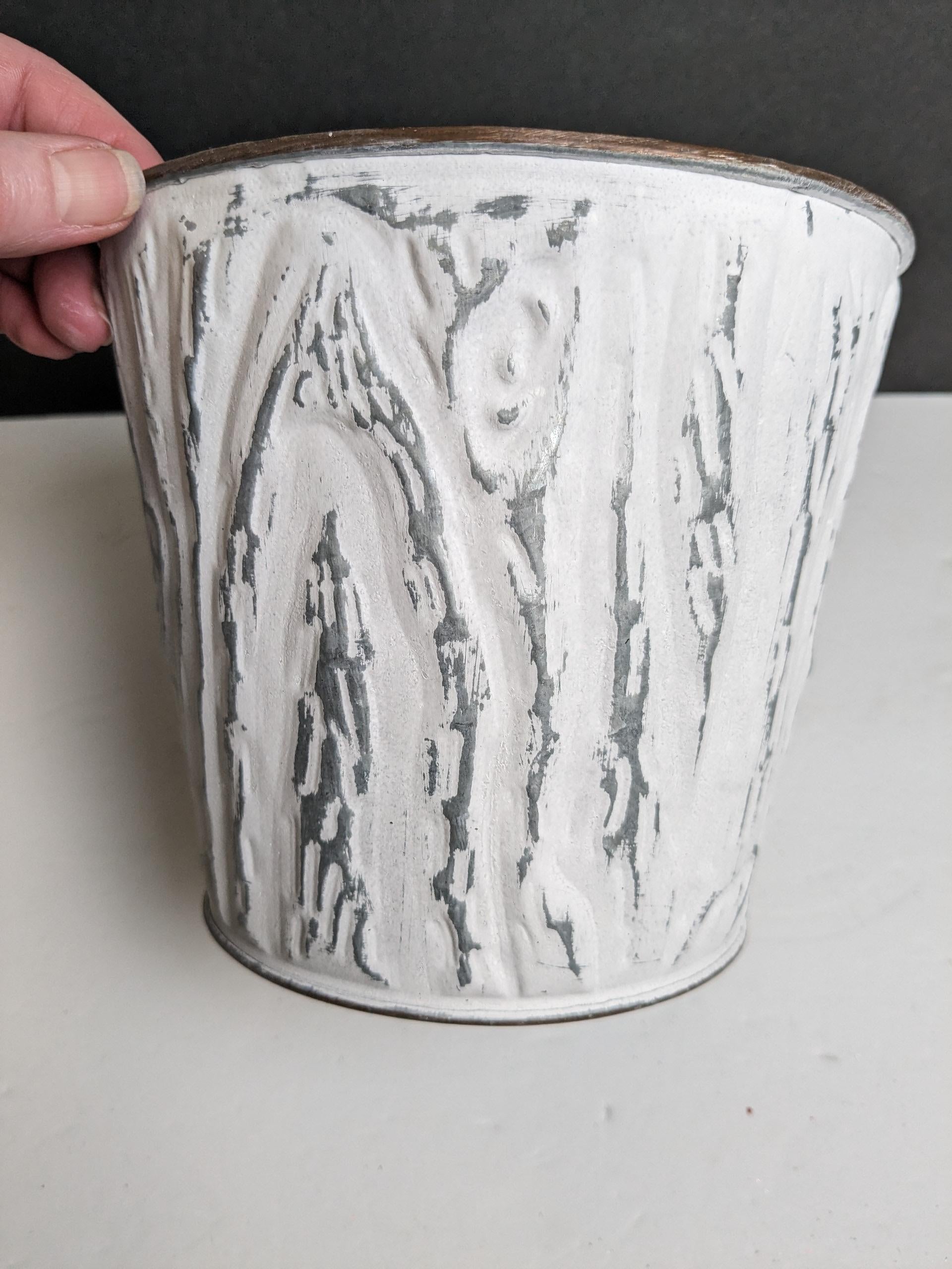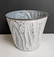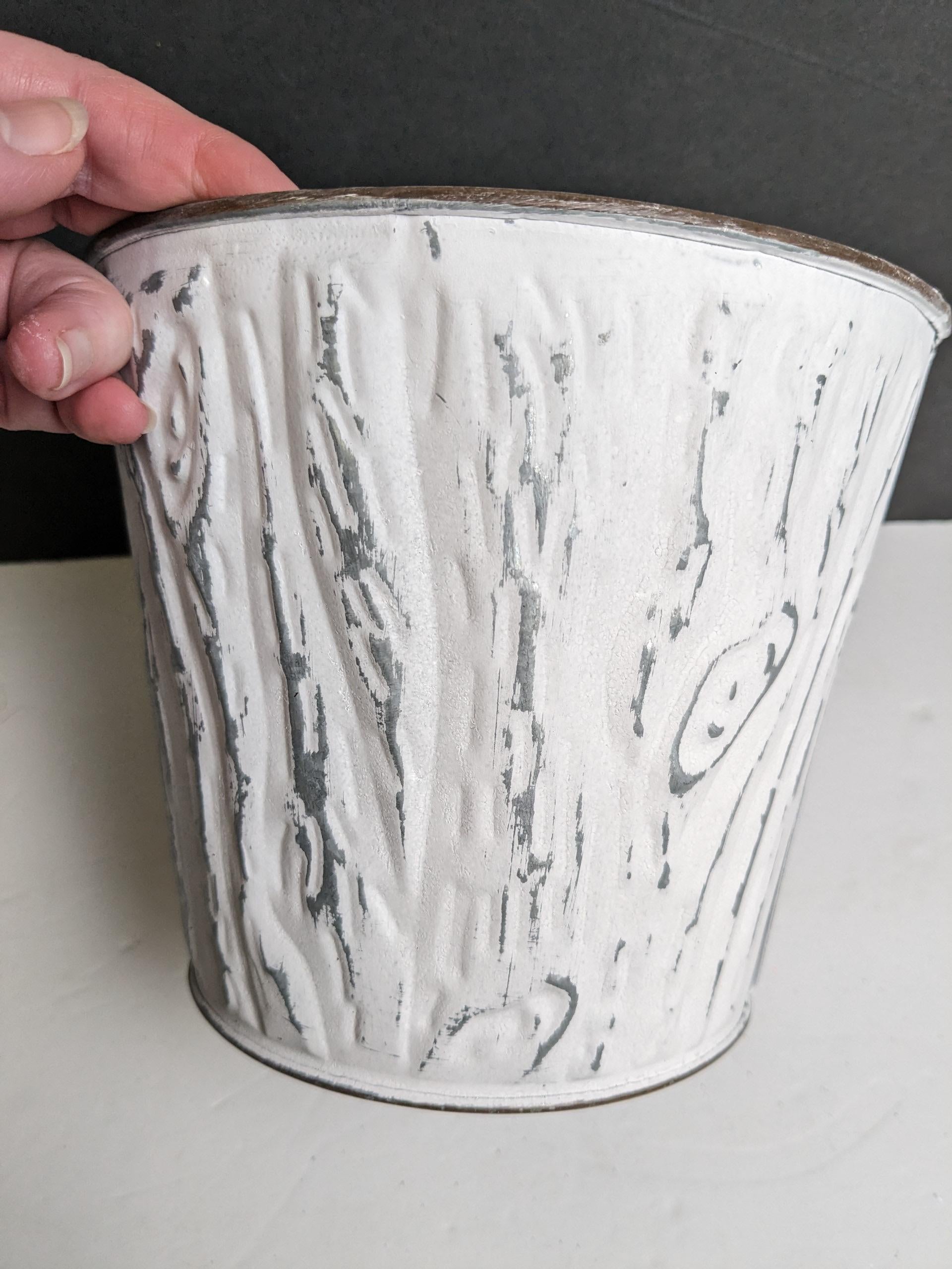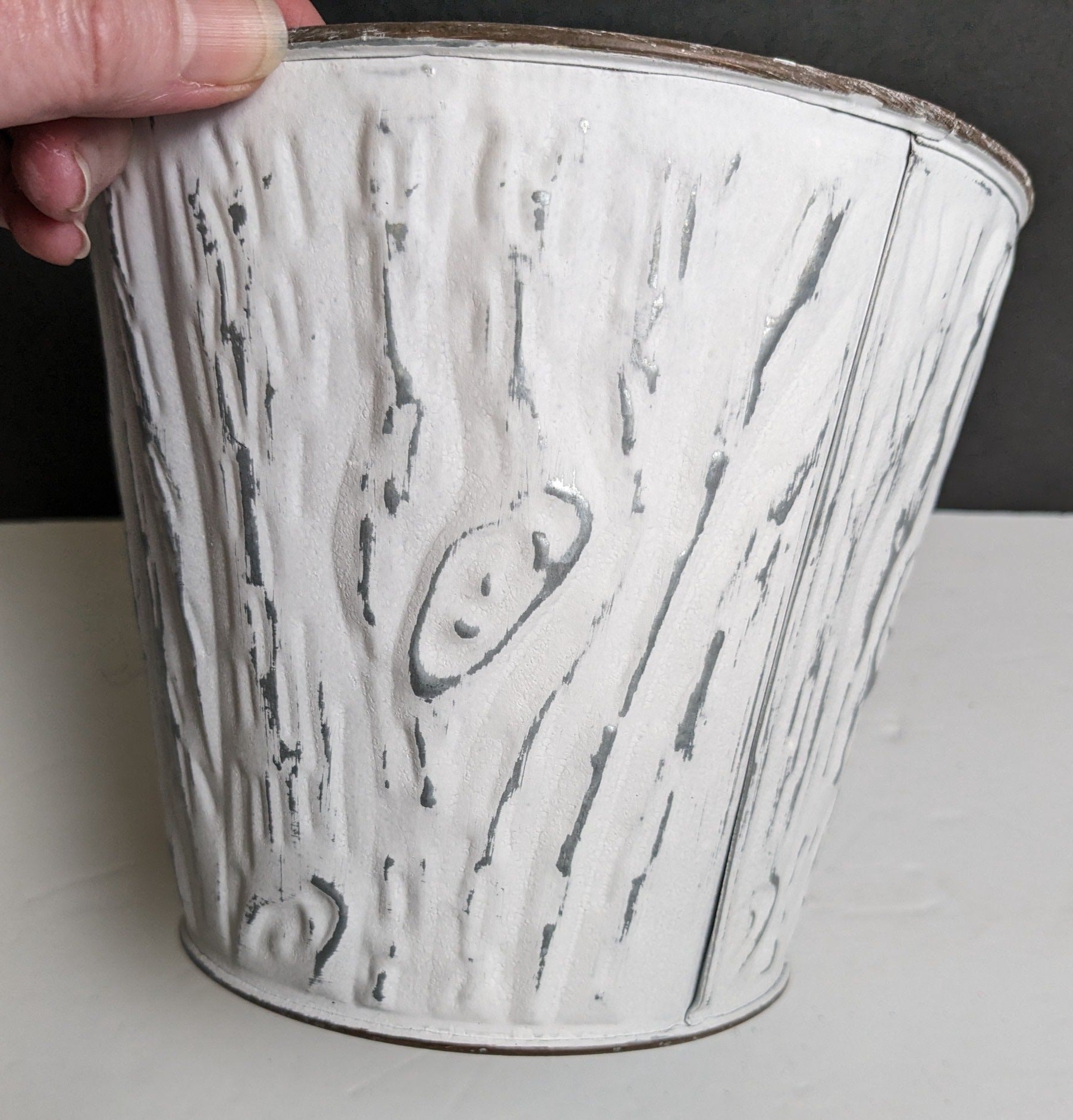 White Galvanized Brushed Faux Wood Grain Tin Planter Pot 6 1/2"