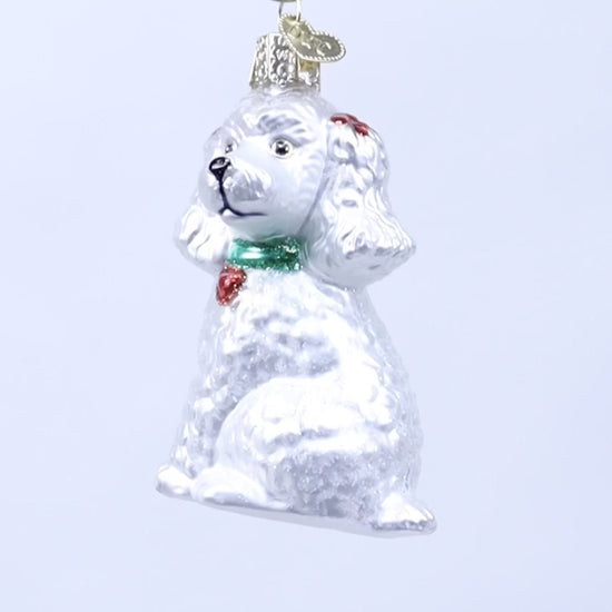 White Poodle Dog Blown Glass Tree Ornament by Old World Christmas