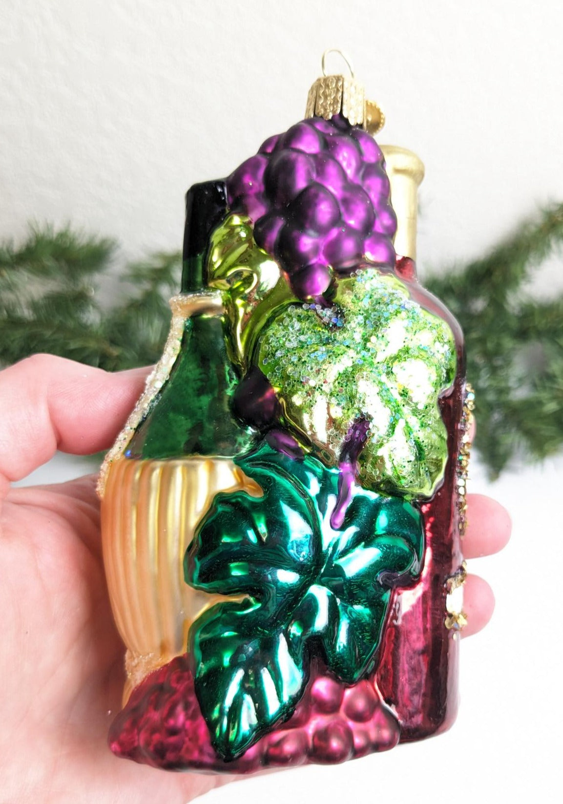 New Retired Old World Christmas Fruit of the Vine Glass Christmas Ornament. What a rare find and absolutely beautiful with wonderful detail, color and sparkle. Perfect for the wine lover in your life. Makes a great hostess or heirloom gift. Wonderful addition to your Christmas ornament collection. This is a RETIRED old World Christmas ornament, and they are very hard to find anymore.