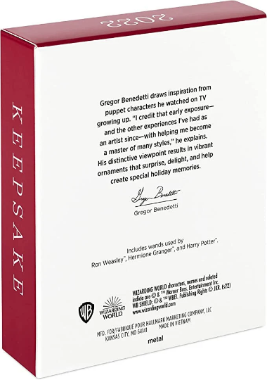 Charm your fellow Harry Potter fans with this set of 3 Wizarding Wands Keepsakes Christmas ornaments. Includes Harry, Hermione and Ron's wands in premium metal.