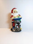 Woodworking Santa Claus Figurine. What a great find. Santa Claus is hard at work building toys. This piece is full of detail and vibrant colors from the pencil behind his ear to his work bench and paint cans. So cute!